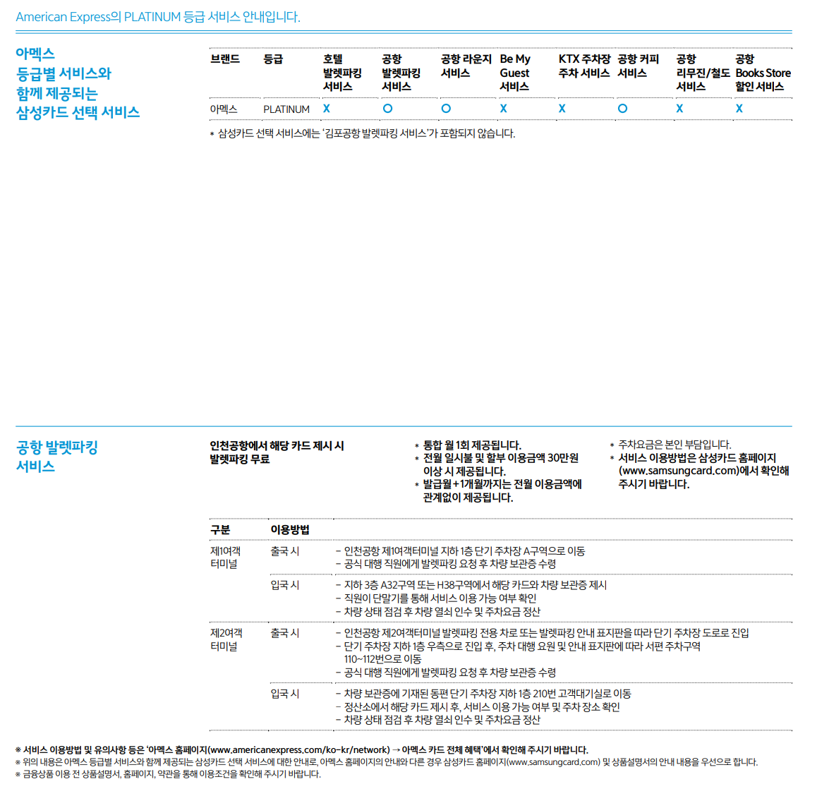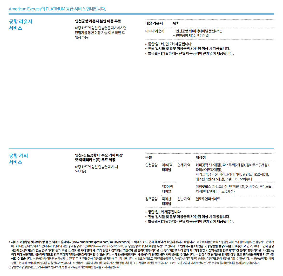 아멕스 프리미엄카드(Platinum) 회원에게 아멕스 제휴사가 제공하는 서비스를 받을 수 있습니다.