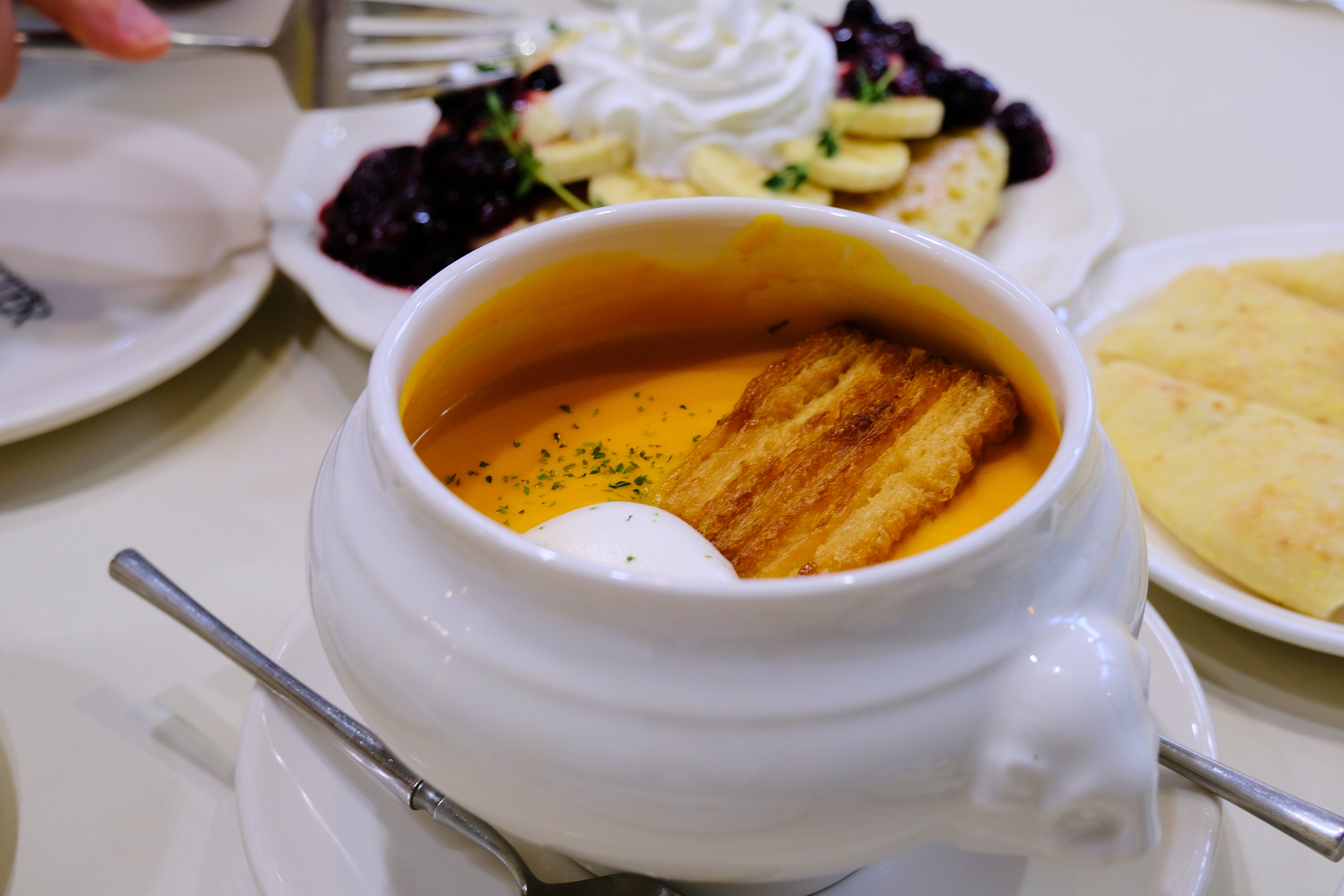제가 기억하기로 이날 굉장히 더웠던 날로 기억을 하는데, 그럼에도 이 따뜻한 스프가 맛있었습니다.