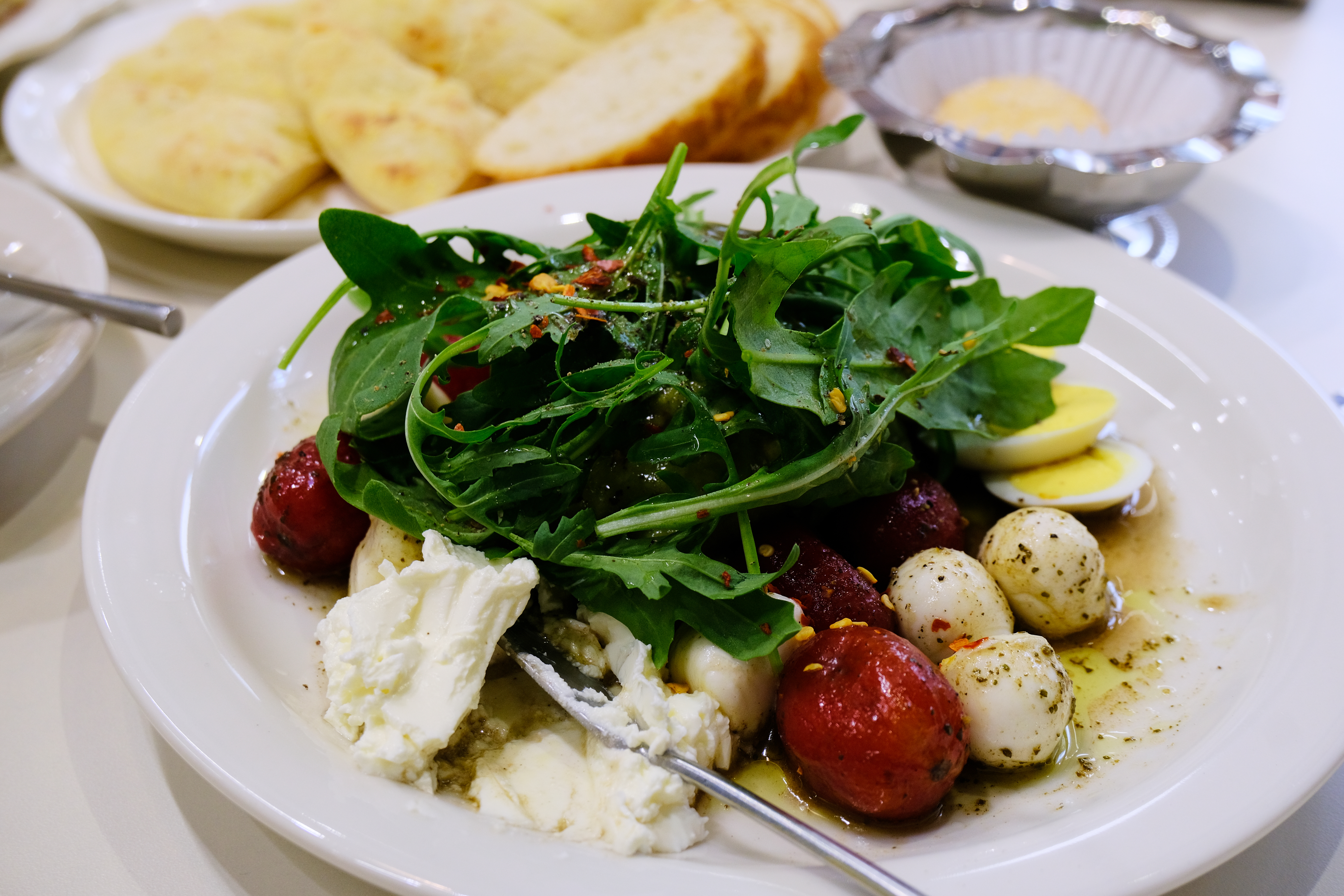 루꼴라(rocket salad)가 약간의 쓴맛을 더해줘서 끊임 없이 먹을 수 있는 한 접시 였습니다. 여기에 바게트 3조각과